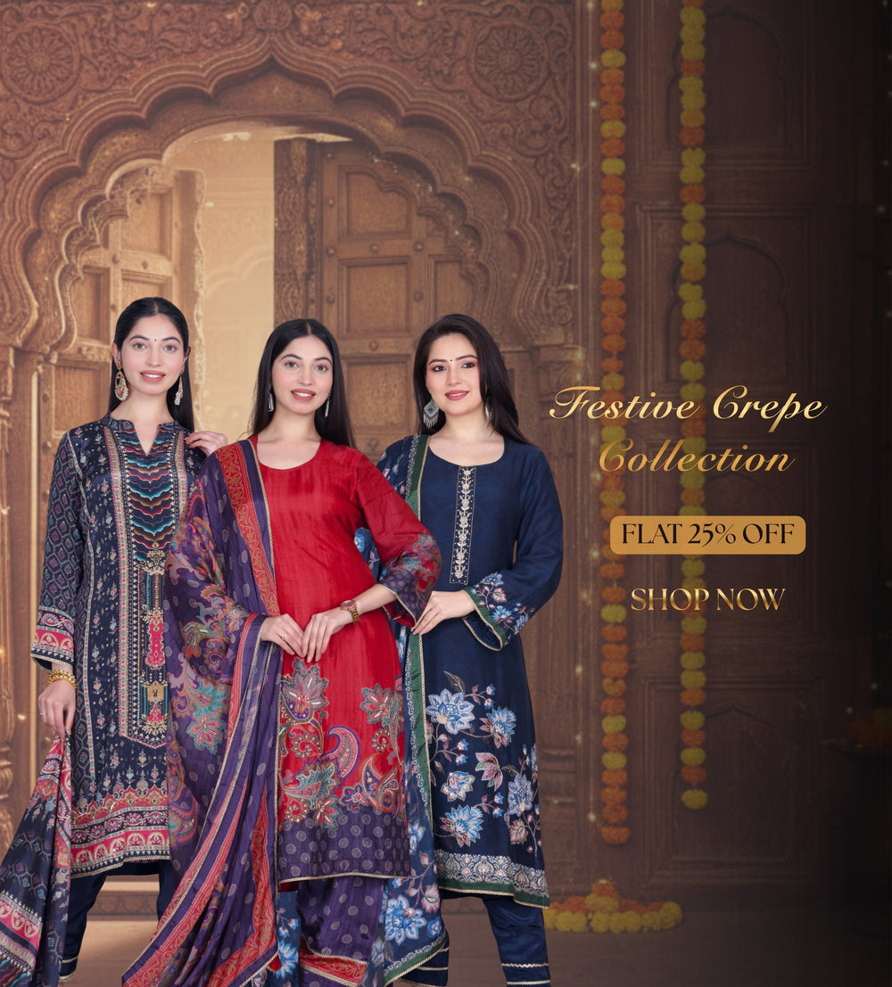 Roop Indigo Geometric Unstitched Crepe Set